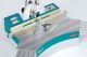 Position and secure the fence plate and lay the work-piece against it. By actuating the foot pedal, the work-piece is pneumatically clamped and the motor starts. The router unit rises through the work-piece and to the pre-set routing depth. When the routing depth is reached the unit returns to its home position and switches off. The routed workpiece is then released.